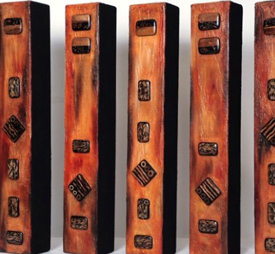 “My art is very unique because the materials I use are a combination of the plasters I use on the walls for faux painting, I incorporate the fusion glass, rocks and stones into the art. So, it’s quite different from a painting, or someone who just does glass or someone who just does jewelry. This art comes from my heart, and I hope that it speaks to your heart.” Peppy has made a transformative journey from corporate Human Resource Director to fine artist. More about Peppy…